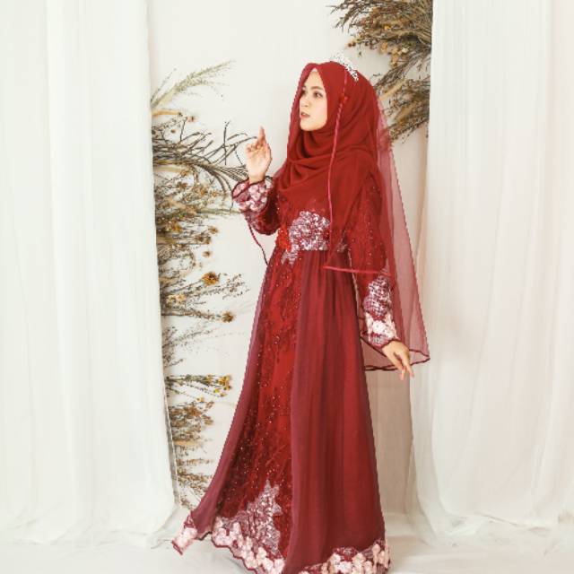Baju gaun pengantin warna merah marun model krinolin full payet motif bunga garis garis wedding dress gown mekar muslim wanita perempuan muslimah hijab . 7 inspirasi gaun pengantin muslimah, yuk ditengok! Baju gaun pengantin warna merah marun model krinolin full payet motif bunga garis garis wedding dress gown mekar muslim wanita perempuan muslimah hijab . Beli gaun pengantin warna merah maroon terbaru di shopee. Gamis syari merah maroon baju muslim terbaru maxi syar'i gaun muslimah dress hijab . Baju gaun pengantin warna merah muda pink wedding dress slim span. Warna jilbab ini sangat cocok jika dipadupadankan dengan warna baju apa saja.